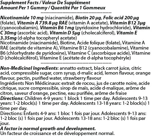 Other Ingredients: annatto extract, black carrot juice, citric acid, compressible sugar, corn syrup, d-malic acid, lemon flavour, orange