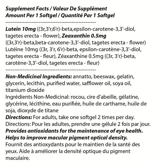 Ingredients: Lutein 10mg ((3r, 3'r, 6r)-beta, epsilon -carotene-3, 3-diol